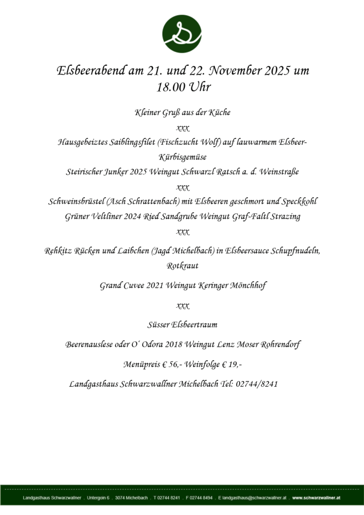Das Menü finden Sie unter: https://www.schwarzwallner.at/images//Aktuelles/Elsbeerabend2021.pdf